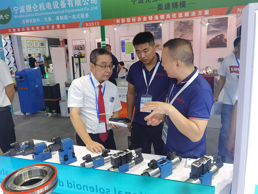 涌镇液压展台上展示了最新的液压元件适用于压铸设备,助力提升压铸效能,吸引了众多专业观众前来参观和交流。涌镇液压的技术人员向观众介绍了公司的产品和技术,现场进行了技术交流和研讨,展示了涌镇液压在压铸行业的实际应用以及解决方案。